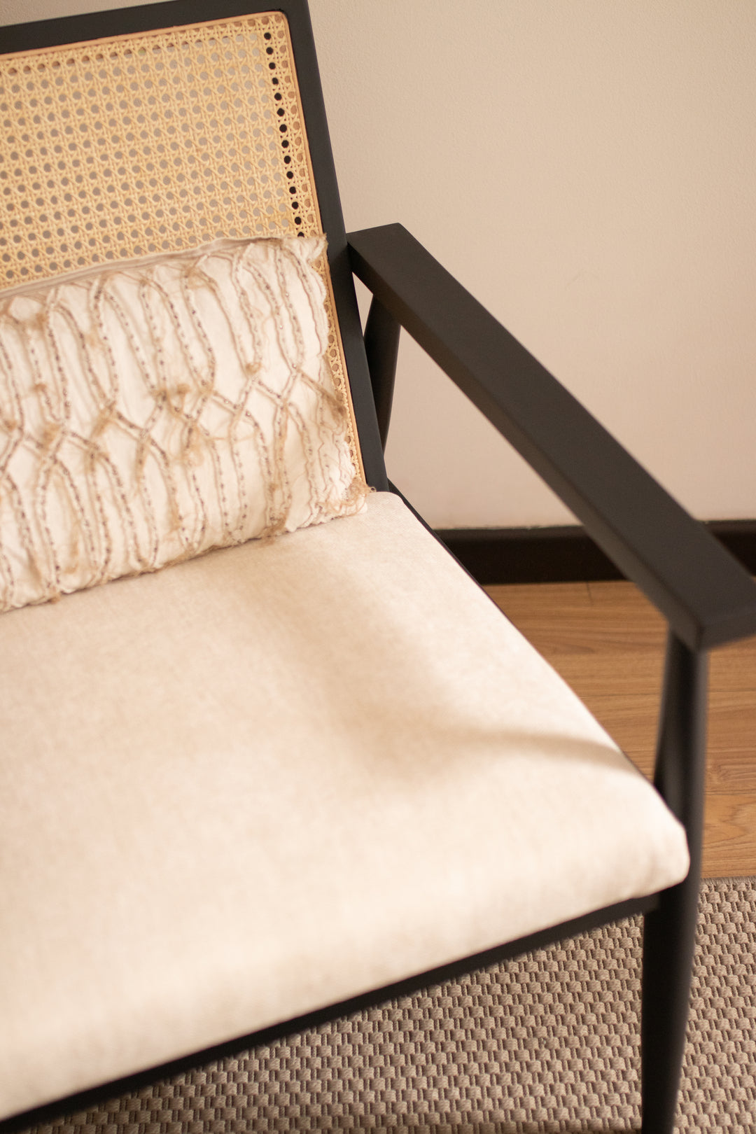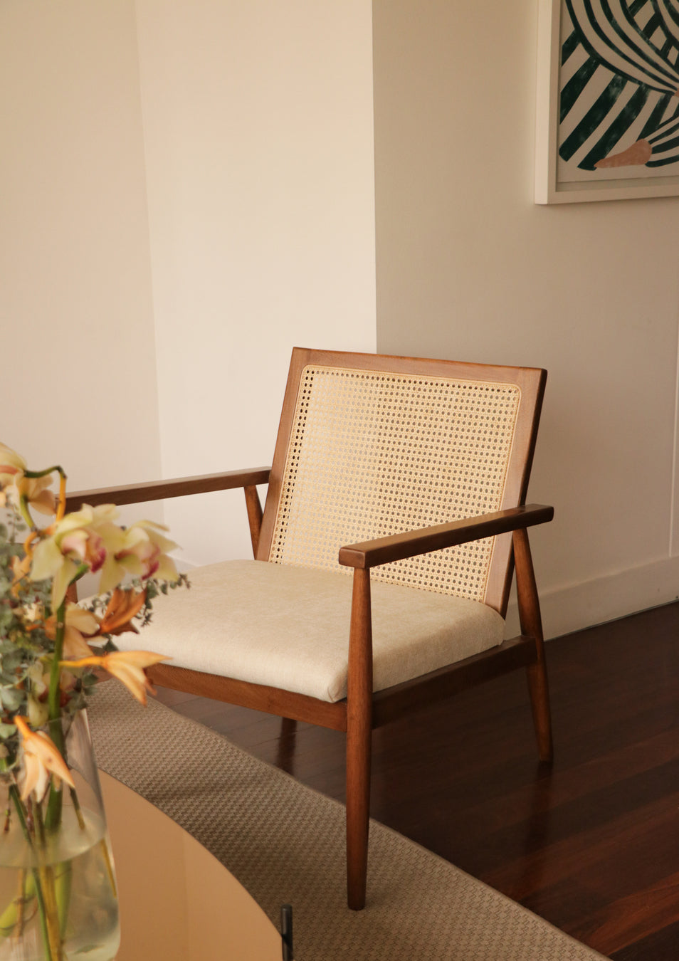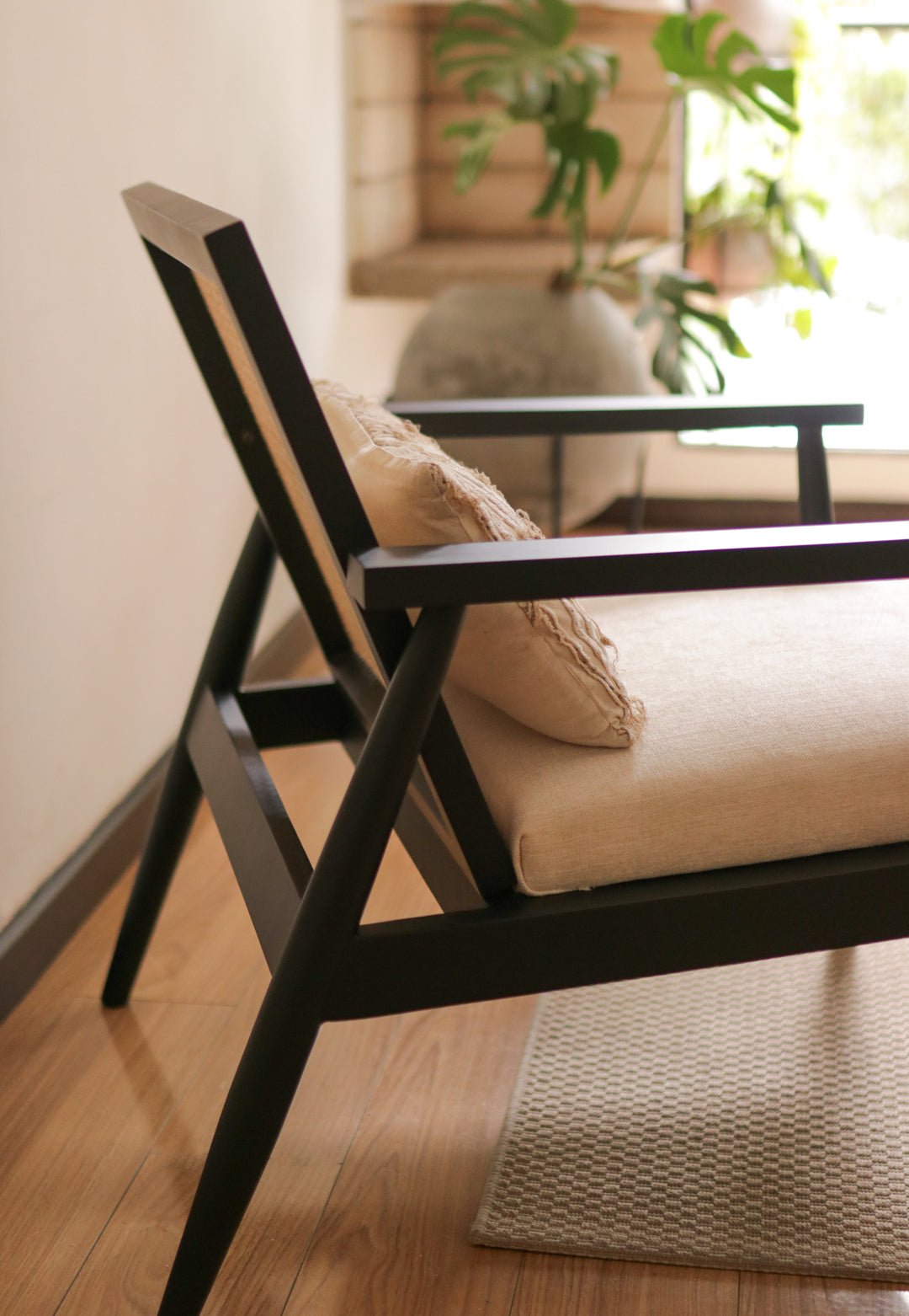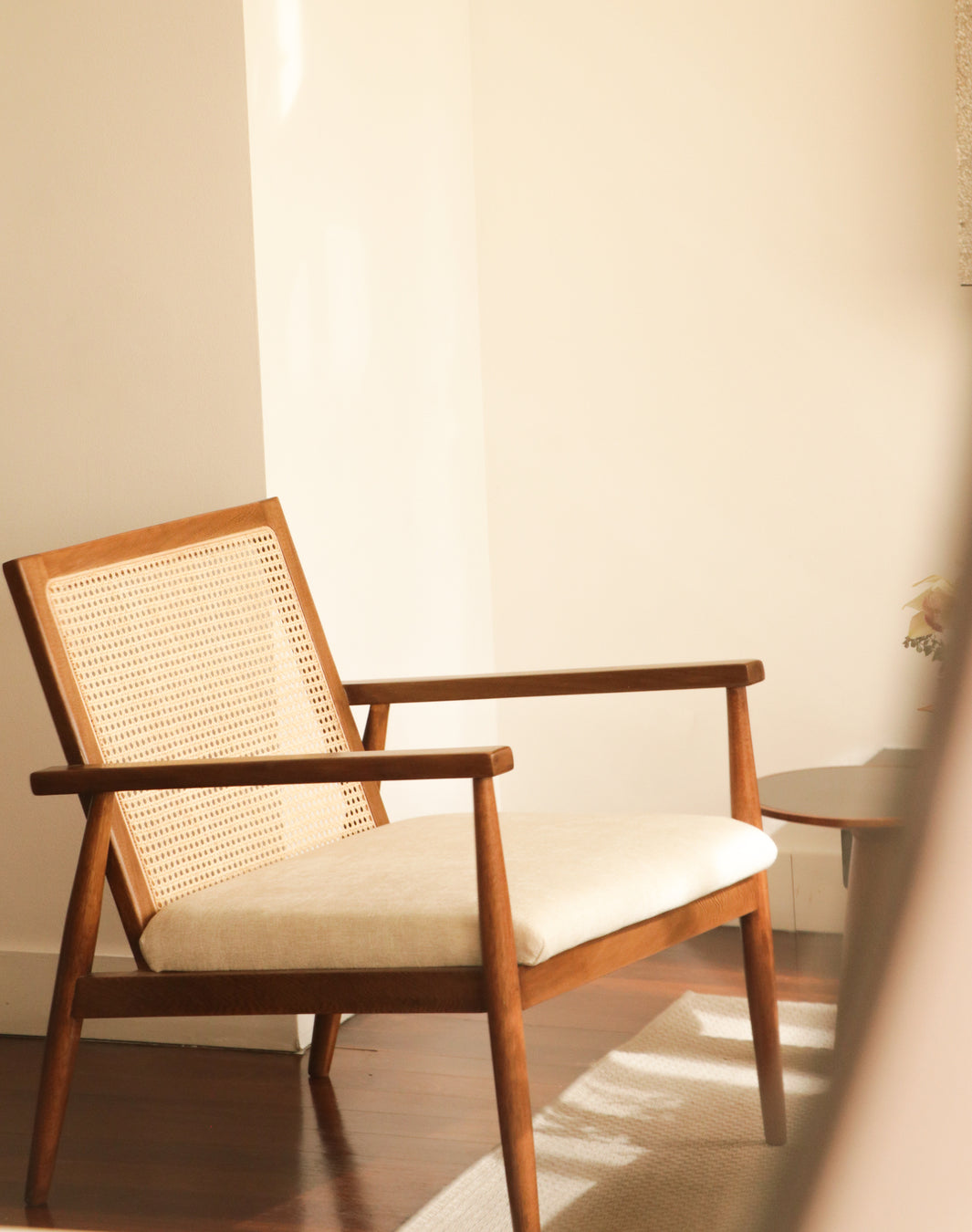 Inspirada en la elegancia de lo cotidiano, la Poltrona Pilar combina la solidez del roble con la suavidad de la lona, creando un contraste sereno que invita a habitar el espacio.
