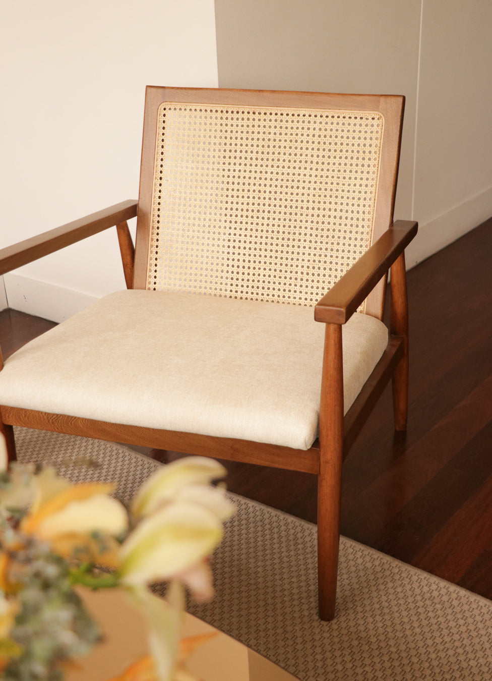 SILLA DE MADERA CON TEJIDO EN RATÁN